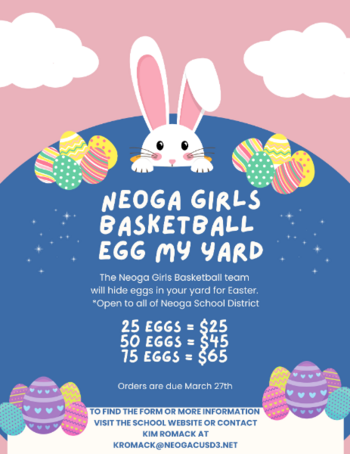 Order your candy and toy filled eggs to be scattered in your yard for Easter Morning. The Neoga Girls Basketball team and coaches will hide the eggs in your yard for you to wake up and find on Easter Morning. If requested we will also leave a note from the Easter Bunny.